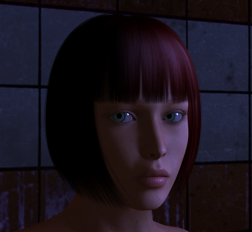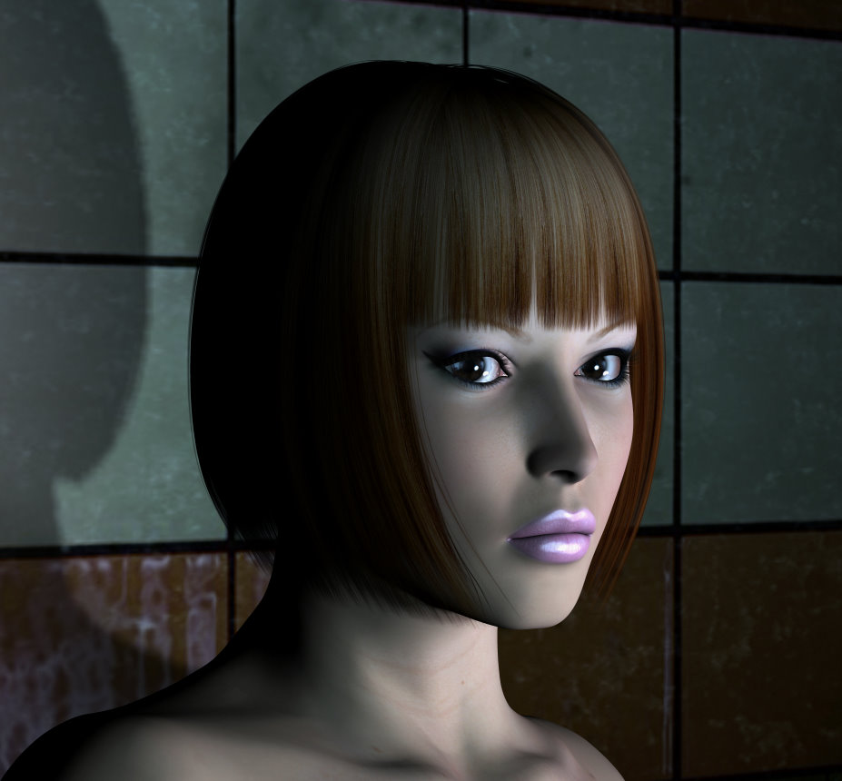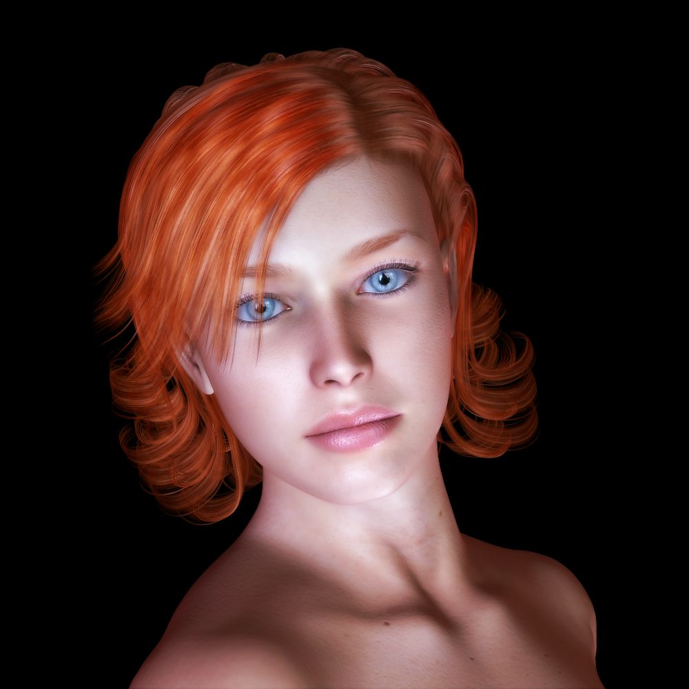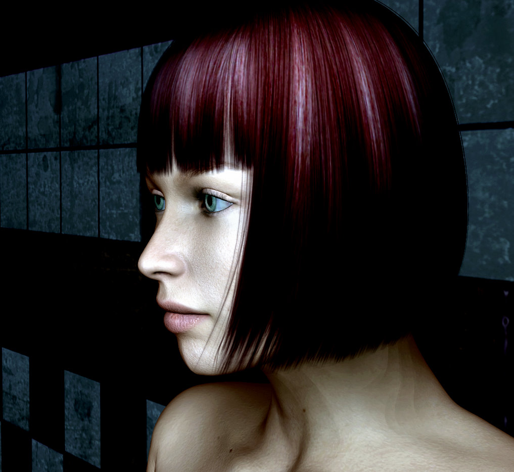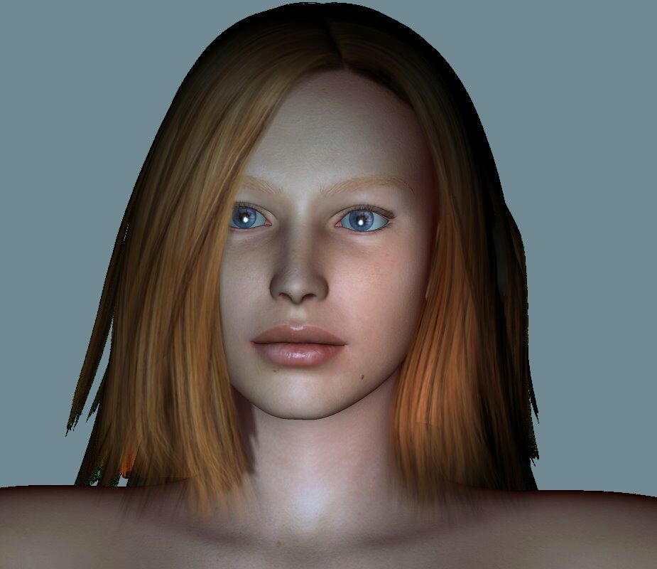 目尻を下げて、鼻、口、顎をいじる、作業時間5分って(笑)あまり弄ると結局は元のままが良かったという事になるので。今回わかった事は、唇は、リアル世界ではちょっと薄めのが好きですが、Poserでやると、なんとなく空間的に寂しい物になってしまいがちで、それを補う意味で、目などを特徴を持たせたりして巧く誤魔化す?のとは違いますが、見た目のバランスも大事だなと感じました。